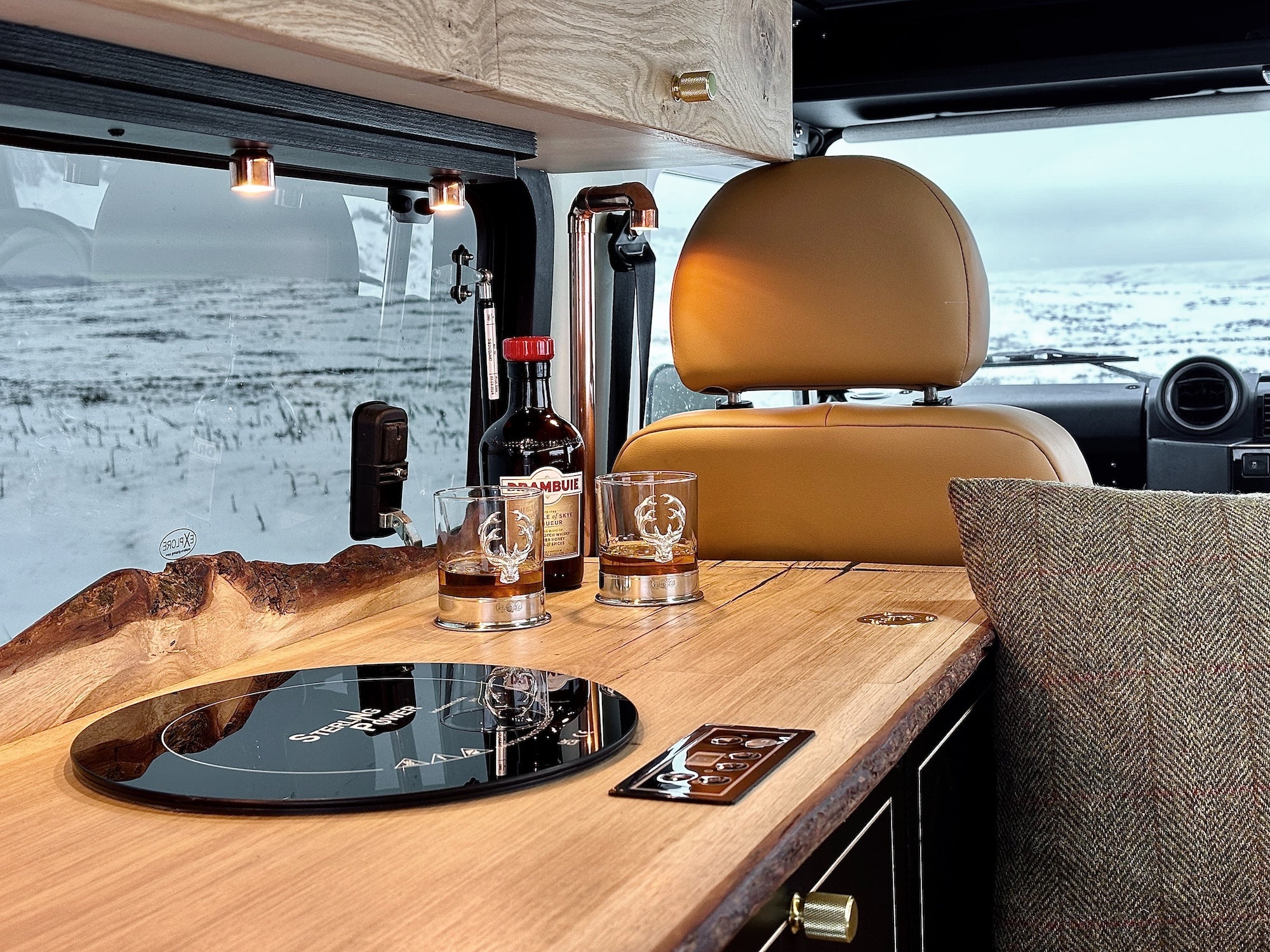 Skaftas interior is inspired by the heritage of the iconic Land Rover with a modern twist. She's been designed and hand built in our workshop based in Yorkshire. As well as camper conversions we can assist with vehicle sourcing, complete vehicle checks and mechanical upgrades at Dan Clarkes Services, a Defender specialist and workshop neighbour. Thirsk is also the home of Twisted Automotive who create the very best Land Rover Defenders money can buy.